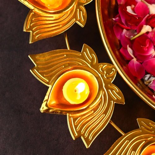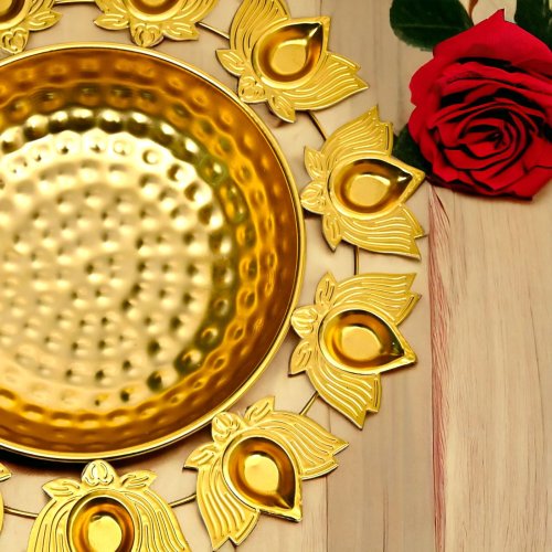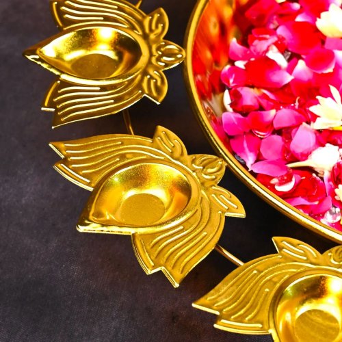 14 Inch Gold Lotus Shape Brass Diya Urli Bowl