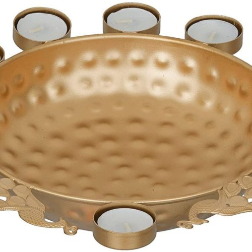 14 Inch Gold- Metal Tealight Candle Holder Urli for Home