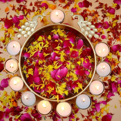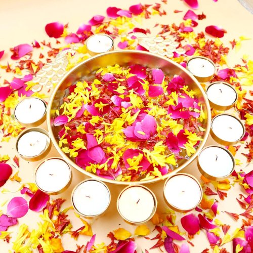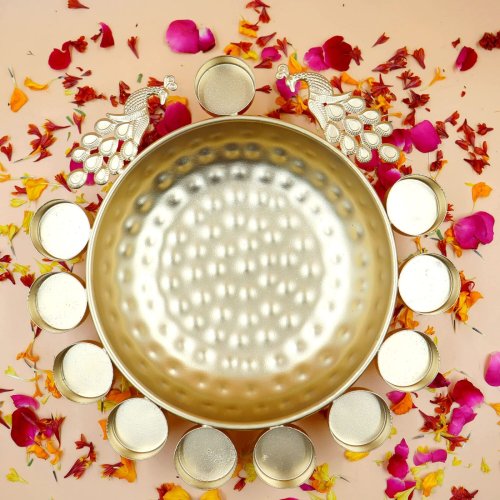 16 Inch Gold- Metal Tealight Candle Holder Urli for Home