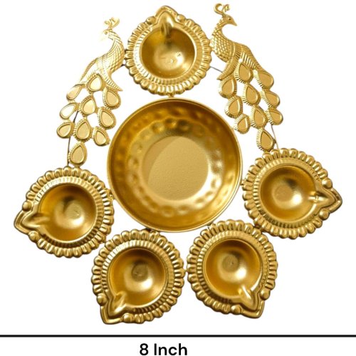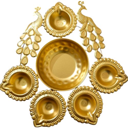 Peacock Design Gold Plated Multipurpose Diya Stand Set