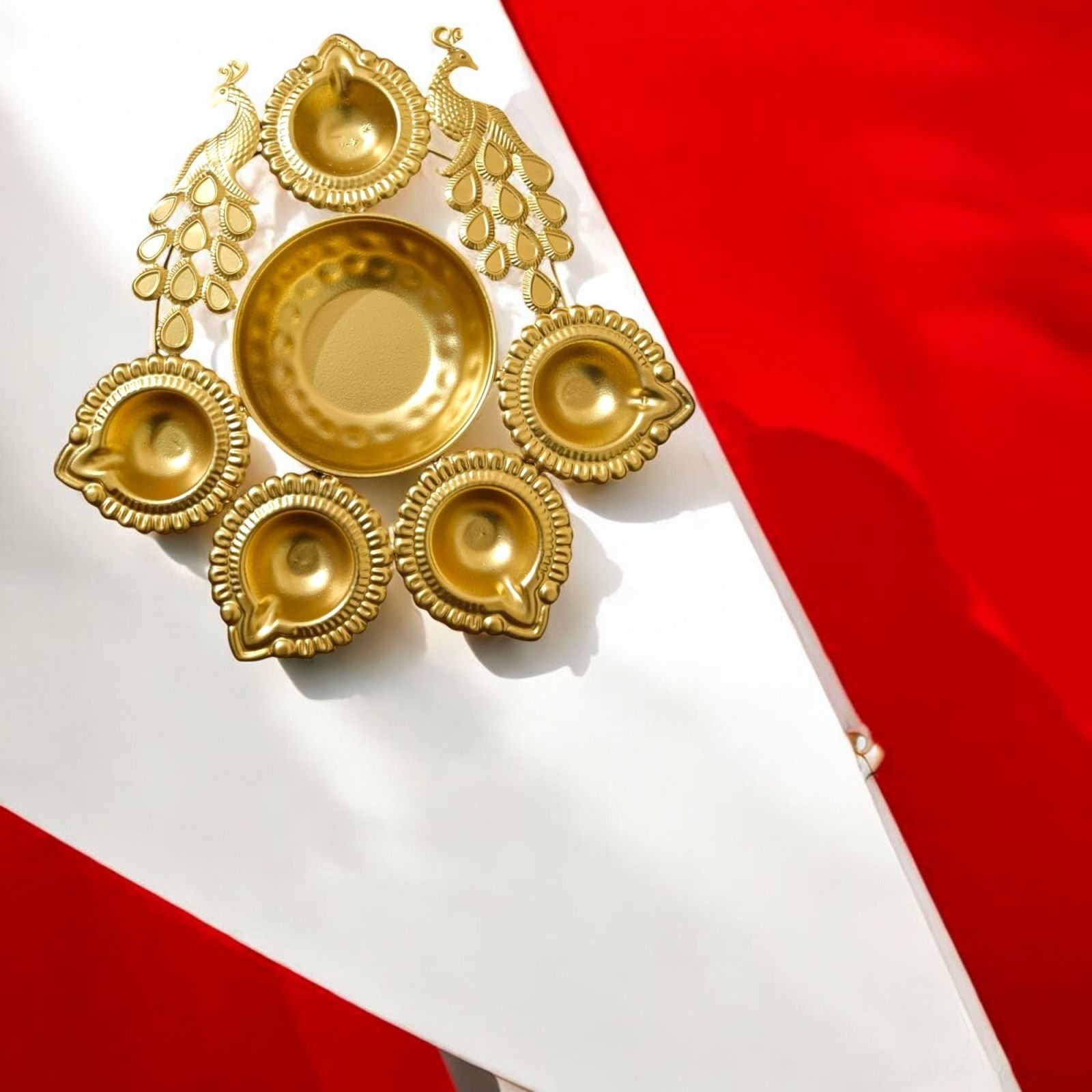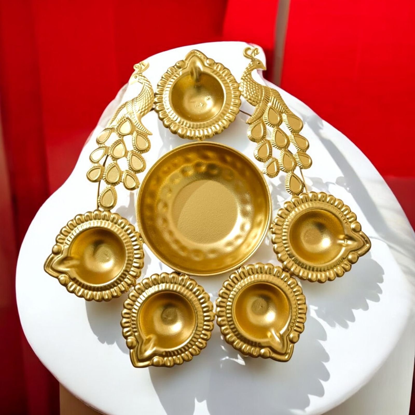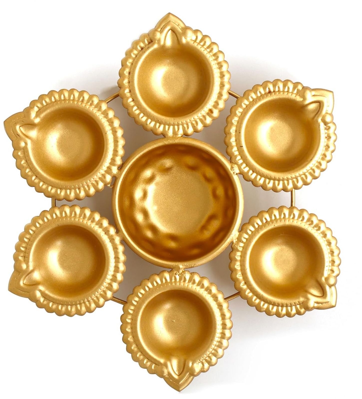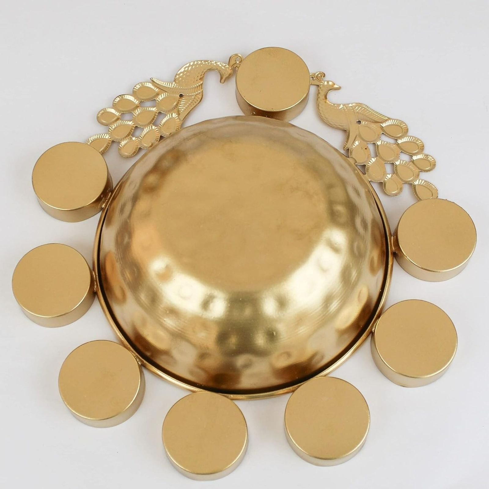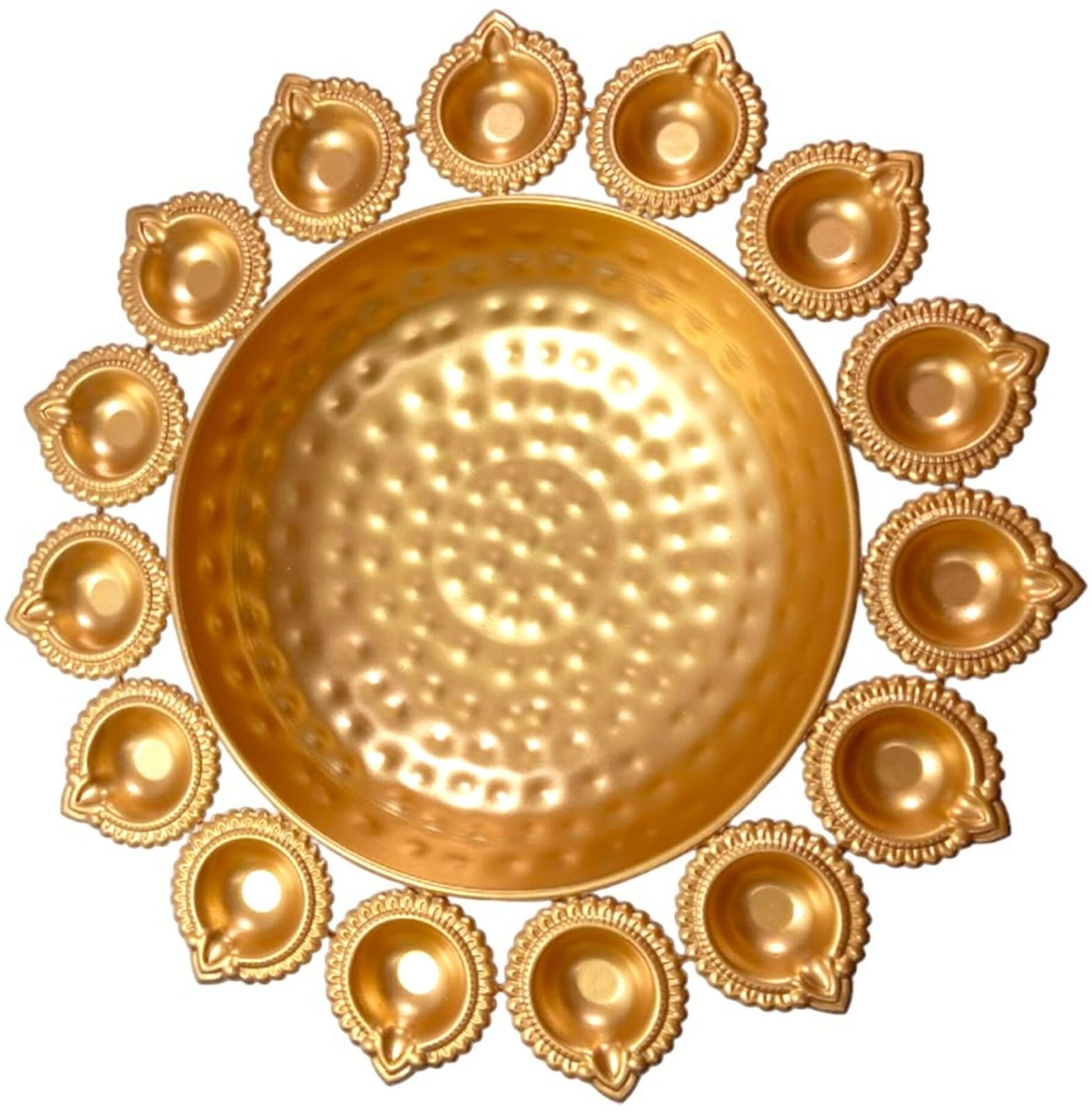 Gold-plated multipurpose diya stand set – compatible with tea light candles, oil lamps, and ghee lamps for versatile festival and decor use.
