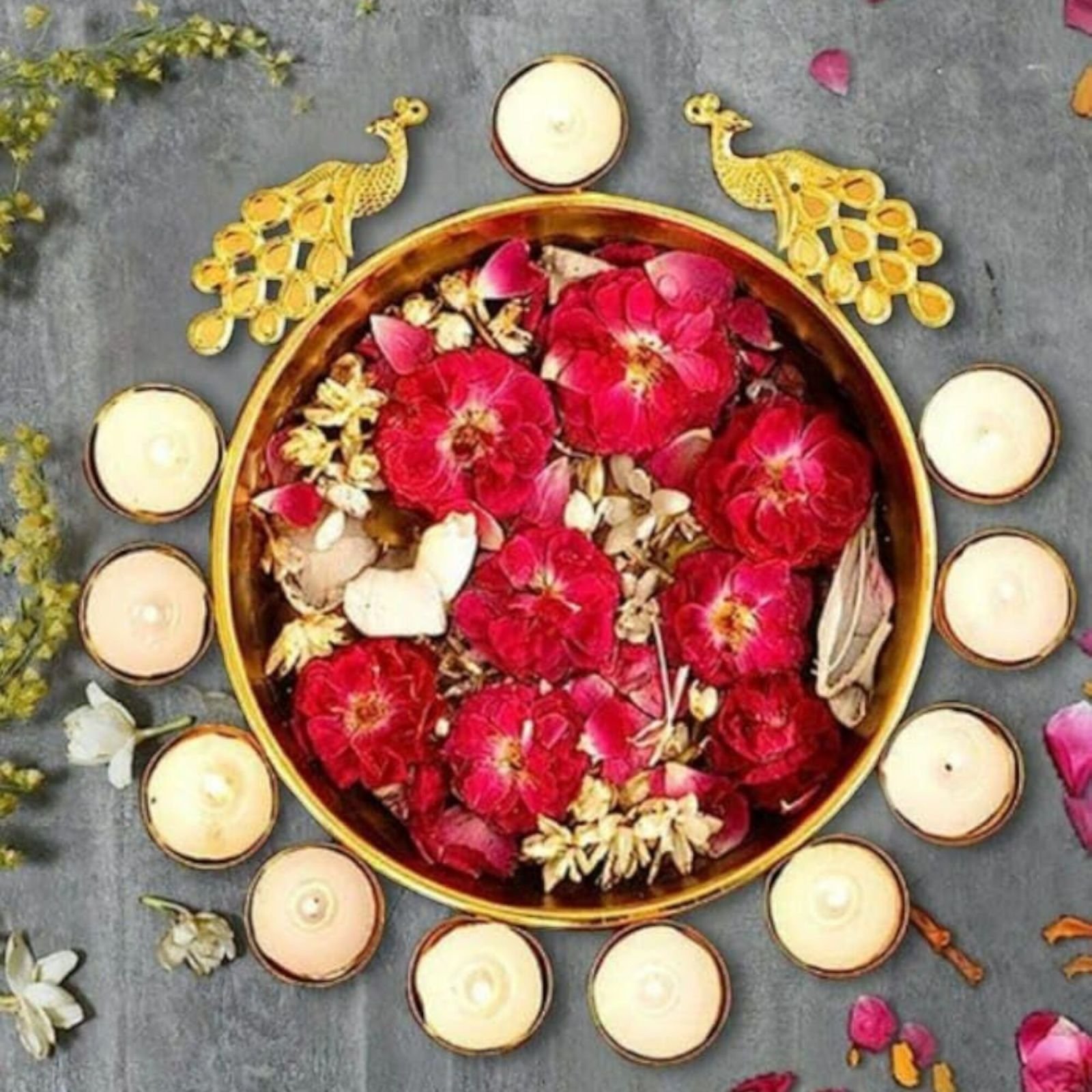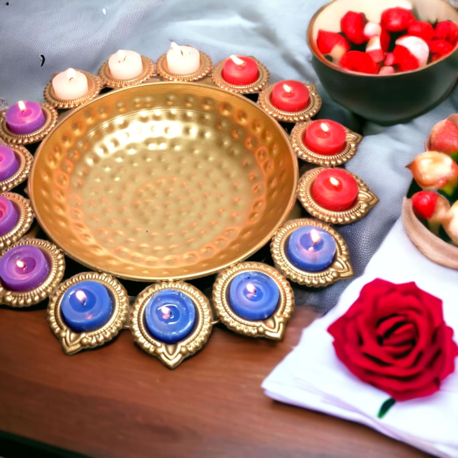 Round Flower Decoration Urni Bowl Lotus Tealight Candle Holder For Home Decor & Best Lighting Decoration Item.