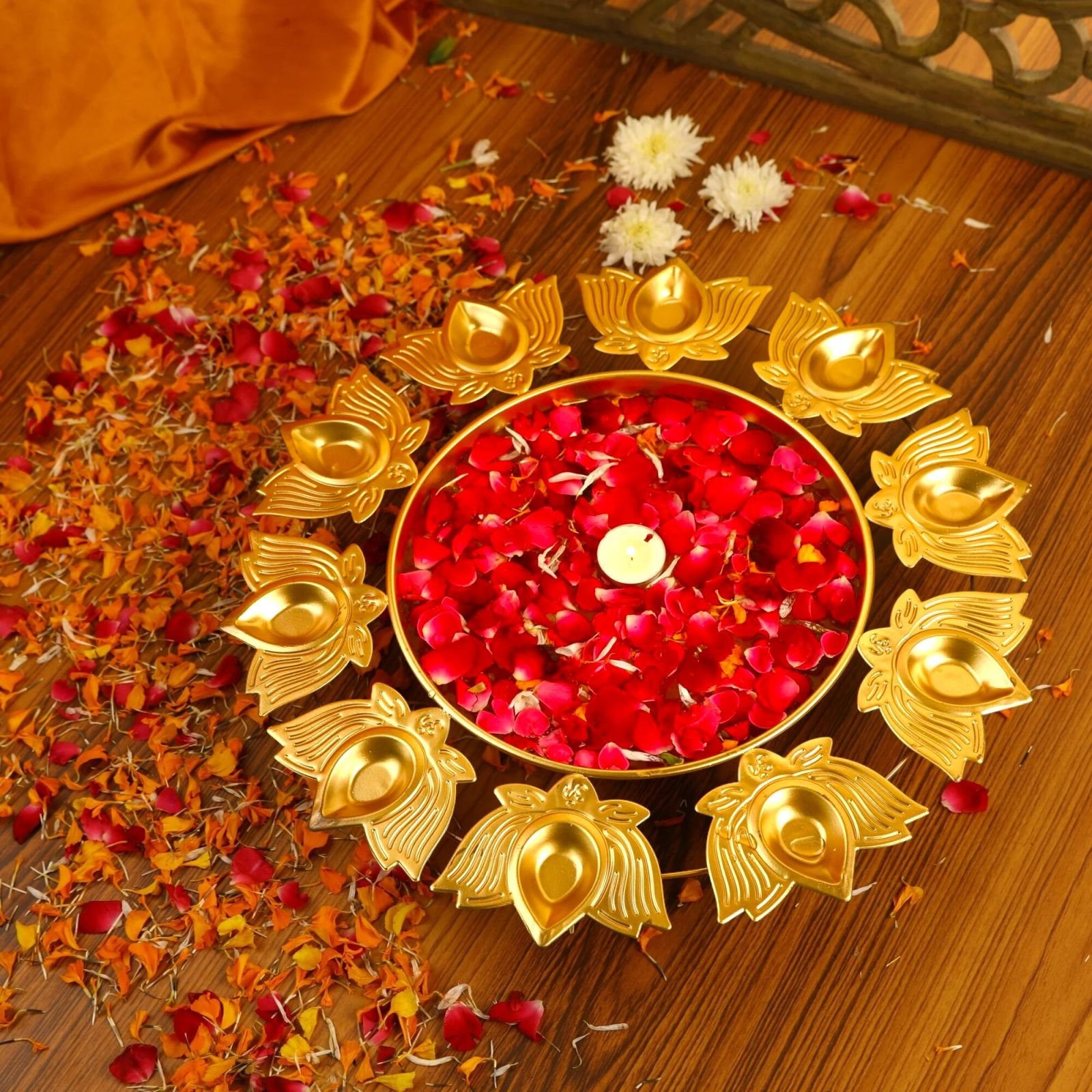 Compatible With Tea Light Candles, Oil Lamps, And Ghee Lamps For Versatile Festival And Decor Use. Ideal Centerpiece For Diwali, Puja, Housewarmings, Weddings, Or As A Spiritual Home Accent For Meditation And Daily Rituals.